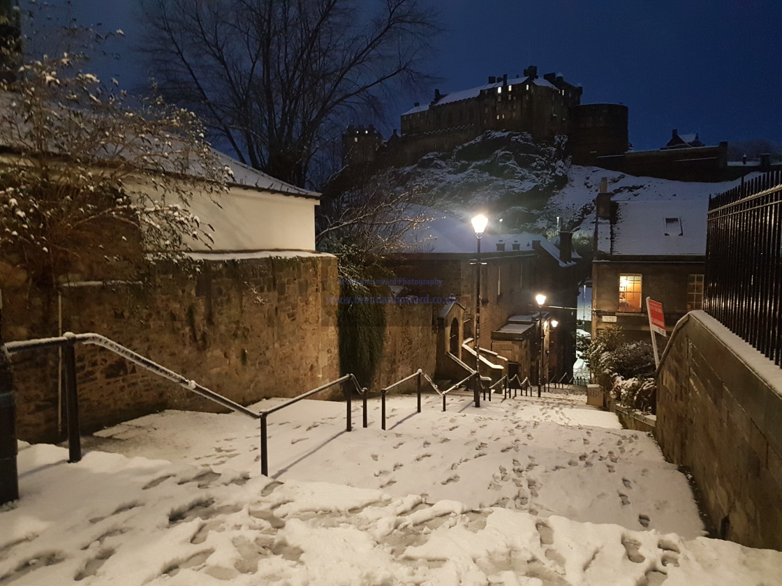 Edinburgh Castle from the Vennel on 21st January 2021.